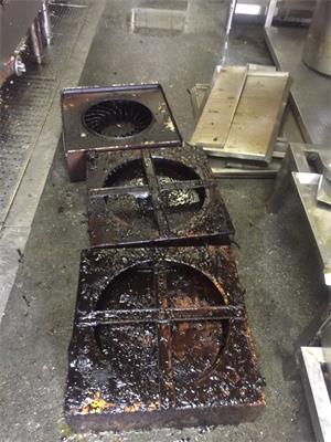 現(xiàn)場油污觸目驚心,存在極大的安全隱患。油煙機(jī),油煙機(jī)管道及其附屬設(shè)備清洗應(yīng)當(dāng)引起各單位法人廣泛注意。定期清理,定期維護(hù),真正做到防患于未“燃”。